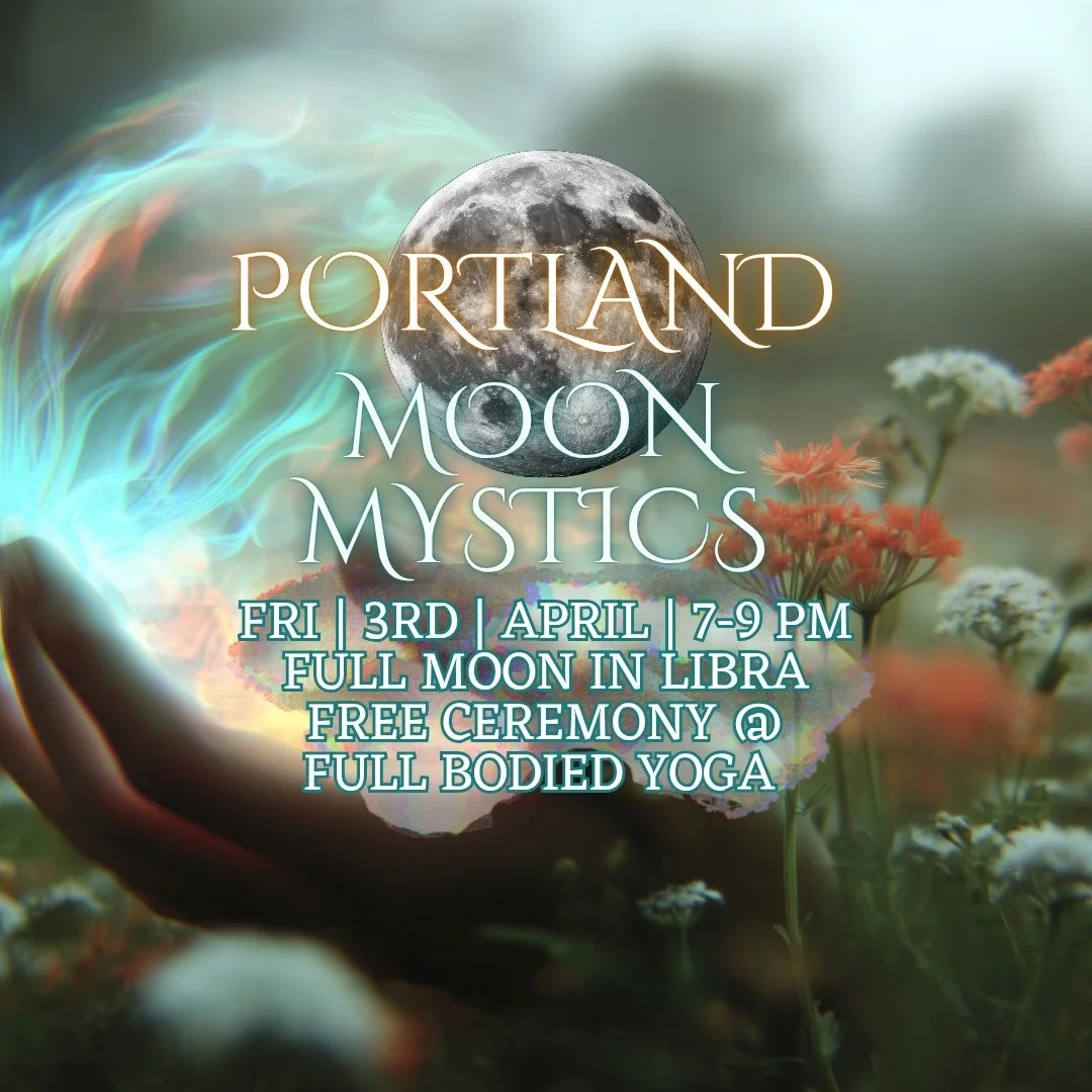 We are moving from the meticulous earth of Virgo into the airy, visionary heights of the Full Moon in Libra. On April 3rd, 2026, we gather at Full Bodied Yoga on Main Street to explore the high art of relational magic, equity, and the delicate scales of spirit.